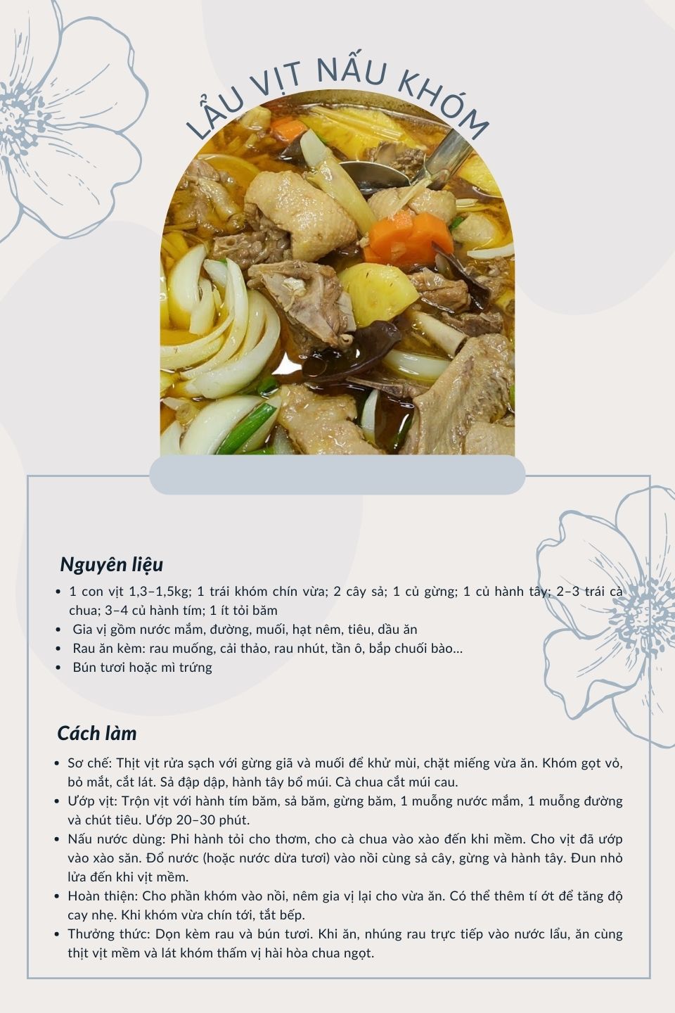 (SGTT) - Nhắc đến các món lẩu mang phong vị ẩm thực miền Tây, lẩu vịt nấu khóm (dứa) luôn là lựa chọn khiến nhiều người nhớ đến bởi hương vị chua thanh, ngọt dịu và thoảng mùi thơm của khóm chín. Món ăn là sự kết hợp hài hòa giữa thịt vịt mềm béo và vị chua ngọt tự nhiên trái khóm, tạo nên nồi lẩu dung dị cho bữa trưa cuối tuần.