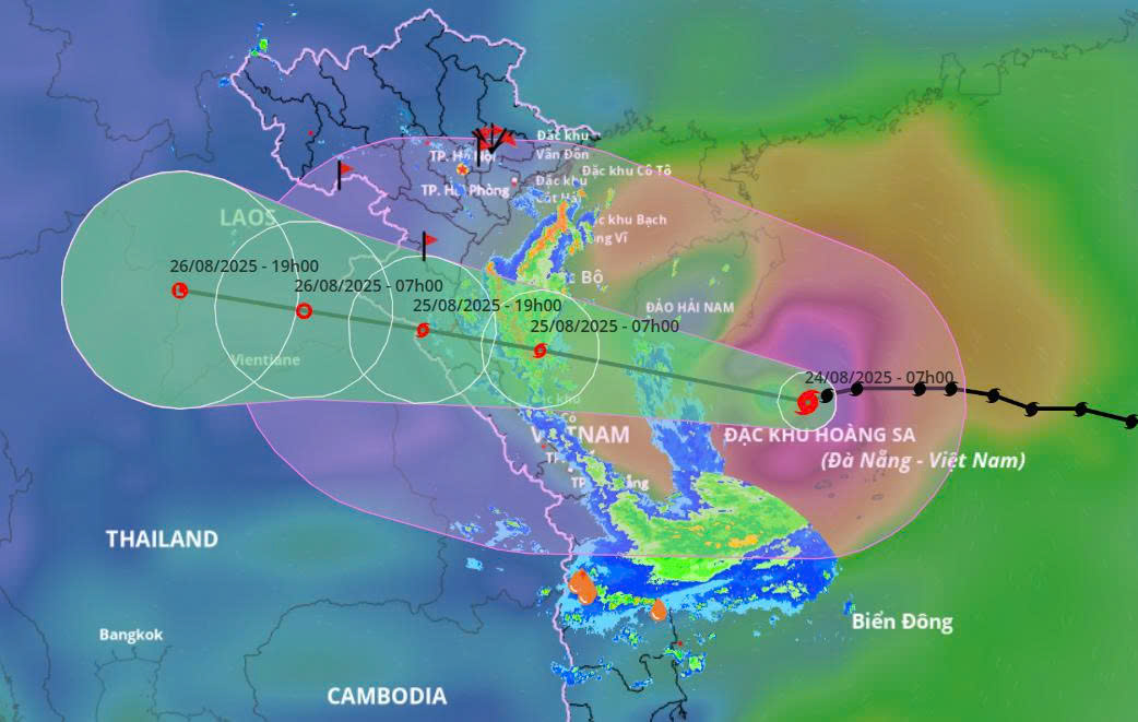 (SGTT) - Sáng nay (24-8), bão số 5 (Kajiki) đang cách Nghệ An 620km, sức gió mạnh nhất 133km/h; dự báo sáng mai bão vào Nam vịnh Bắc Bộ rồi đổ bộ Nghệ An - Hà Tĩnh.