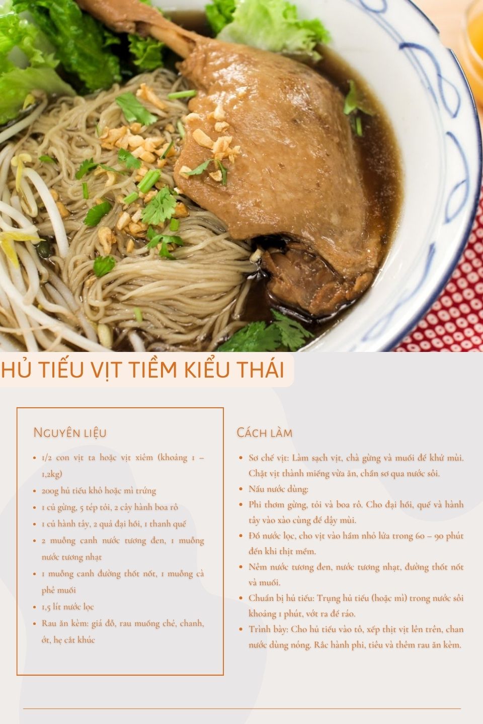 (SGTT) - Nếu Việt Nam có món hủ tiếu Nam Vang, Trung Hoa có mì vịt tiềm, thì người Thái lại tự hào với Thai Duck Noodle Soup (Hủ tiếu vịt tiềm kiểu Thái). Món ăn hòa quyện giữa vị ngọt thanh của nước dùng, hương thơm của thảo mộc và miếng thịt vịt mềm đậm đà, tạo nên một bữa ăn vừa quen vừa lạ.