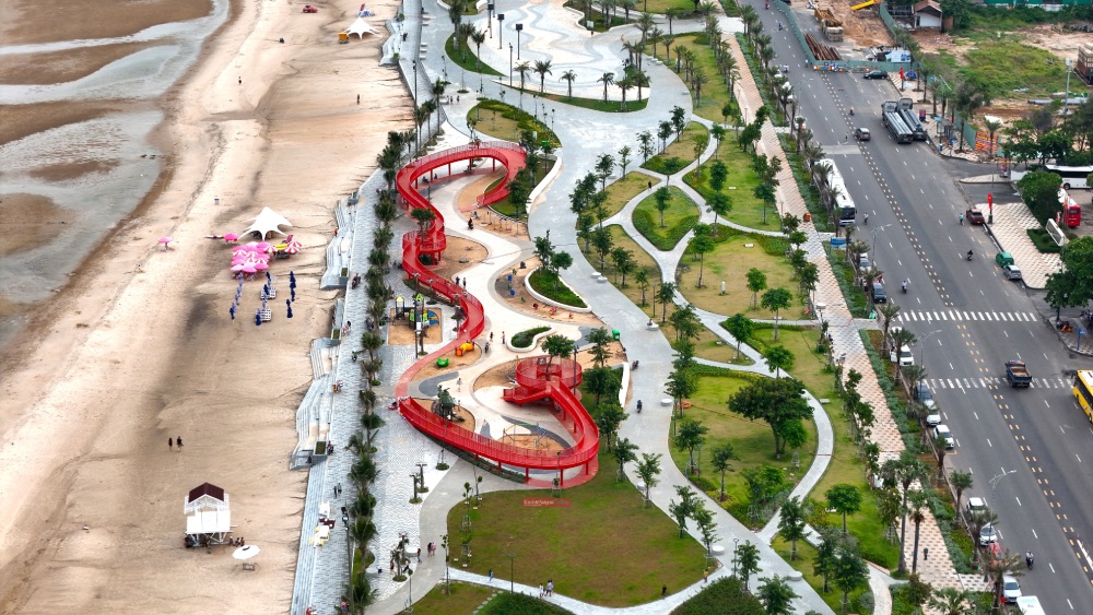 Theo ghi nhận của Kinh tế Sài Gòn Online, các nhóm công nhân đang gấp rút hoàn thiện công trình để đảm bảo tiến độ lên đèn, sẵn sàng đón khách trong dịp lễ lớn 2-9.Không gian hướng biển thông thoáng, hệ thống cây xanh làm đẹp thành phố.Bên cạnh tháp, một số công trình khác như sân bóng rổ, 5 vị trí hầm đi bộ kết nối từ khu khách sạn, nhà vệ sinh, trạm dịch vụ công cộng, điểm vui chơi giải trí, tập thể thao... nằm trên 2 lô đất 165, 165A đường Thùy Vân, cũng đạt tỷ lệ hoàn thiện trên 85%.Phối cảnh tháp Tam Thắng về đêm rực rỡ ánh đèn. Ảnh: Ego Group.Công trình không chỉ mang giá trị thẩm mỹ mà còn góp phần nâng tầm giá trị cảnh quan đô thị, thúc đẩy phát triển du lịch và tạo dựng hình ảnh hiện đại, năng động cho TPHCM.