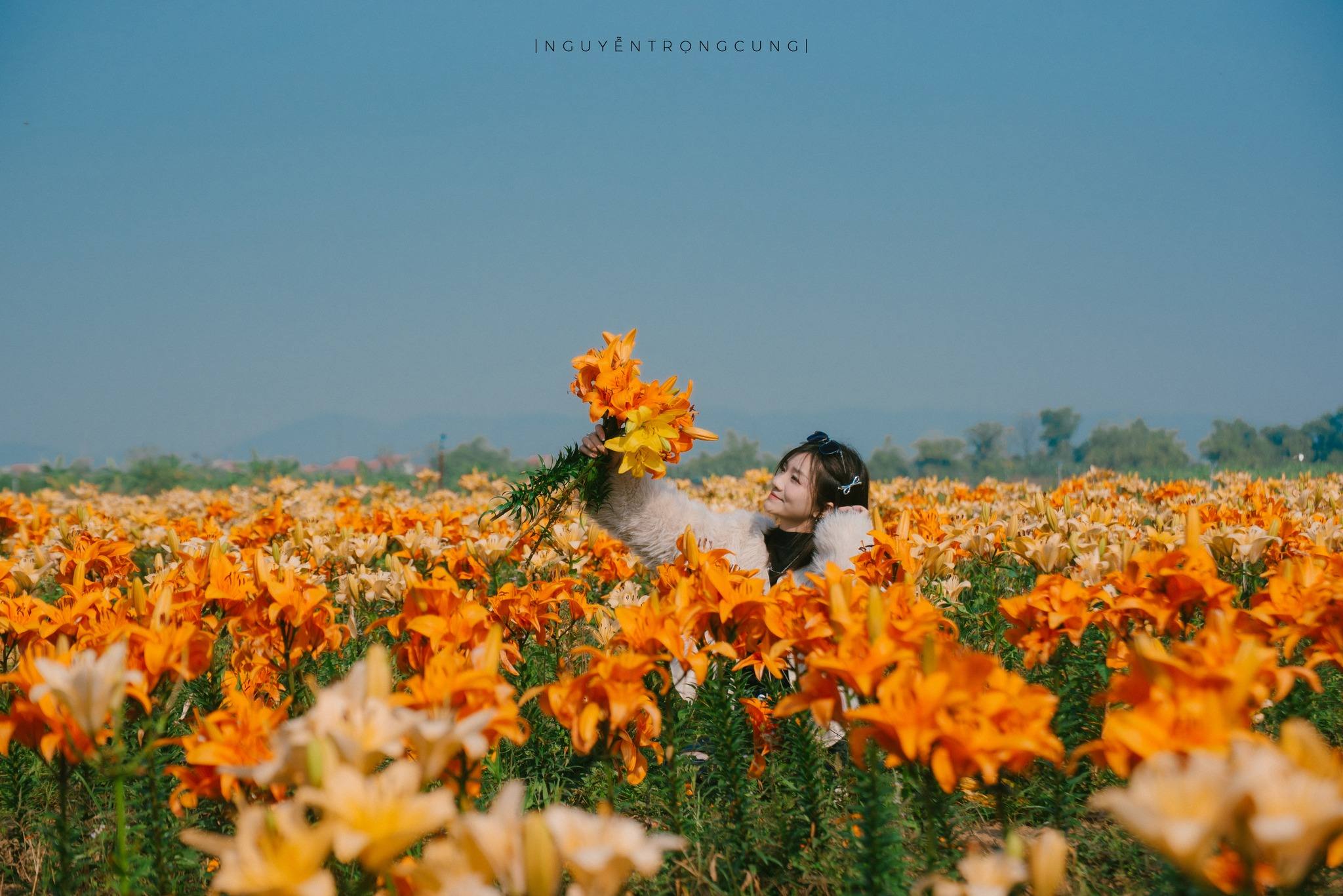 Nằm ven đê sông Kinh Thầy, cánh đồng hoa ly tại Cồn Trụ (phường Lê Đại Hành, thành phố Hải Phòng) đang bước vào thời điểm đẹp nhất trong năm. Ảnh: Nguyễn Trọng CungHàng ngàn bông ly khoe sắc trên những luống hoa thẳng tắp, nổi bật giữa không gian đồng quê yên bình, thu hút người dân địa phương và du khách từ nhiều nơi đến tham quan, chụp ảnh. Ảnh: Nguyễn Trọng CungCánh đồng không thu phí vào cửa, tạo điều kiện để mọi người thoải mái dạo chơi và ghi lại khoảnh khắc giữa những thảm hoa rực rỡ. Ảnh: Nguyễn Trọng CungDu khách cũng có thể mua hoa trực tiếp từ người trồng để ủng hộ bà con, đồng thời mang về những bó hoa tươi vừa cắt tại ruộng. Ảnh: Nguyễn Trọng Cung