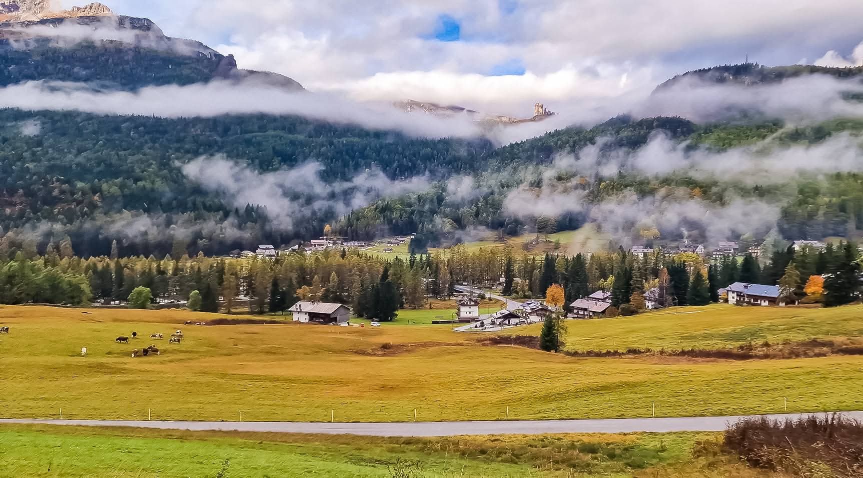 Larch – loài thông rụng lá đặc trưng của vùng núi Alps – đổi từ xanh sang vàng trước khi trút lá vào đầu đông. Ảnh: Nguyễn Tất ThịnhMàu vàng của rừng lan dọc theo sườn núi, tạo nên khung cảnh ấn tượng. Ảnh: Nguyễn Tất ThịnhBuổi sáng, sương mù giăng nhẹ qua các thung lũng, từng dải mây trôi chậm giữa những đỉnh núi đá xám. Ảnh: Nguyễn Tất ThịnhNhiều du khách dừng lại ở các điểm cao, uống cà phê nóng và chụp lại khoảnh khắc mặt trời khuất sau dãy núi. Ảnh: Nguyễn Tất ThịnhTrong không gian yên tĩnh, du khách có thể ngồi bên bàn gỗ, thưởng thức món pasta tươi, rượu vang vùng Veneto và trò chuyện khi sương đêm phủ xuống thung lũng. Ảnh: Nguyễn Tất ThịnhMùa thu ở Cortina thường kết thúc vào đầu tháng 11. Khi những cây larch trút hết lá, tuyết đầu mùa rơi nhẹ, phủ lên mái nhà, triền dốc và rừng thông. Ảnh: Nguyễn Tất ThịnhCảnh sắc chuyển dần sang gam trắng và xám bạc, mở đầu cho mùa đông yên tĩnh giữa Dolomites. Ảnh: Nguyễn Tất Thịnh