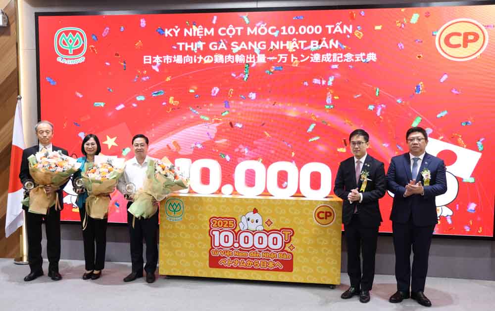(SGTT) - Ngày 22-10, CPV Food Bình Phước công bố cột mốc xuất khẩu 10.000 tấn thịt gà chế biến được xuất sang Nhật Bản, tính từ khi chính thức gia nhập thị trường vào năm 2022.