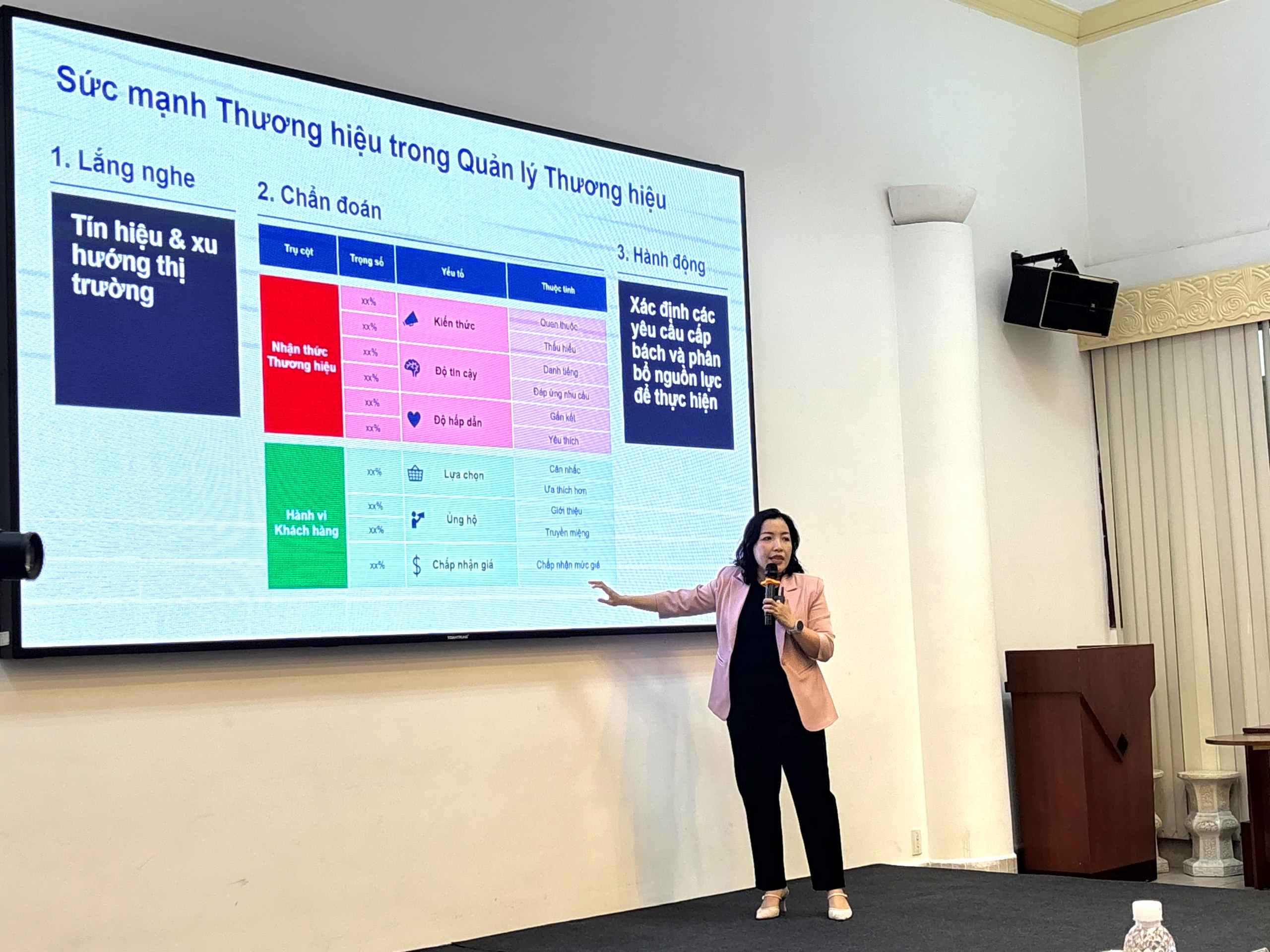 Từ phân tích hệ thống chỉ số sức mạnh thương hiệu, bà Quyên đã cho thấy cách doanh nghiệp có thể theo dõi mức độ gắn kết của khách hàng, mức độ nhận biết, mức độ tín nhiệm… qua đó nâng cao khả năng cạnh tranh trên thương trường.
