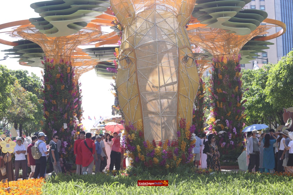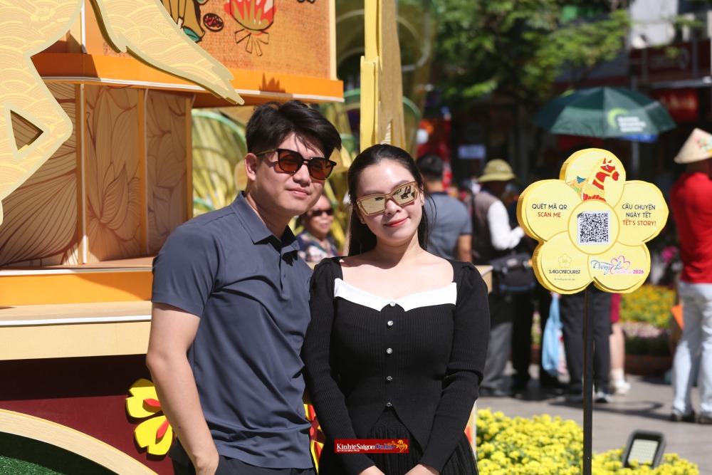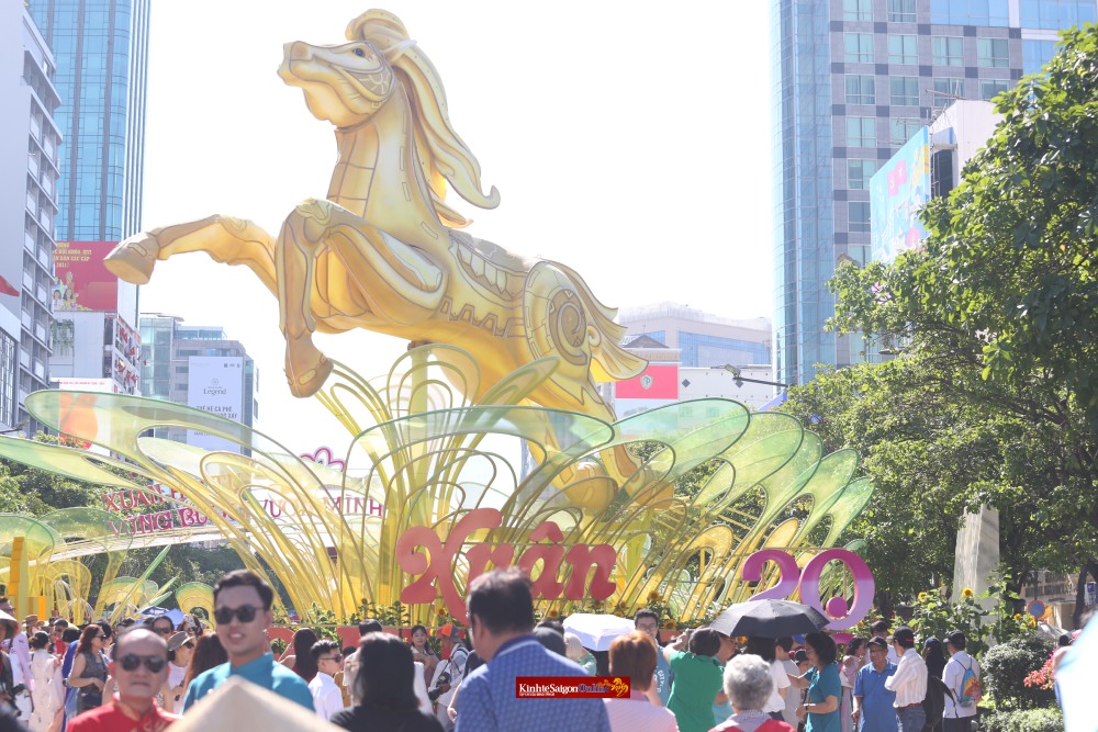 Riêng linh vật ngựa cùng đại cảnh tại hai khu vực cổng mở và cổng kết sẽ được trưng bày đến 21 giờ ngày 22-3 nhằm phục vụ nhu cầu tham quan, thưởng ngoạn của người dân và du khách.Theo ghi nhận của Kinh tế Sài Gòn Online, từ sáng sớm 16-2, khu vực đường hoa đã đông nghịt người. Trước đó, ngay sau lễ khai mạc tối 15-2, dòng khách tham quan đã đổ về rất đông.Du khách phải di chuyển chậm để tham quan, chụp ảnh.Khu vực linh vật năm mới là điểm thu hút đông người dừng lại check-in nhất.Nhiều gia đình, nhóm bạn trẻ, thậm chí cả du khách nước ngoài diện áo dài truyền thống, ghi lại khoảnh khắc du xuân trong ngày đầu mở cửa.Chị Phan Yến (ngụ TPHCM) cho biết chị và bạn đã đến từ 8 giờ sáng để tránh đông nhưng vẫn bất ngờ trước lượng khách tham quan. “Năm nào tôi cũng đi đường hoa. Không khí rất vui, rộn ràng; mọi người diện áo dài chụp hình nên nhìn rất có không khí Tết".