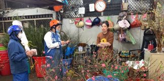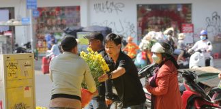 Những ngày cận Tết Tân Sửu, nhu cầu đặt hoa của khách tăng cao, nên chị Vân và các nhân viên tại cửa hàng phải làm việc liên tục để có thể kịp phục vụ khách.