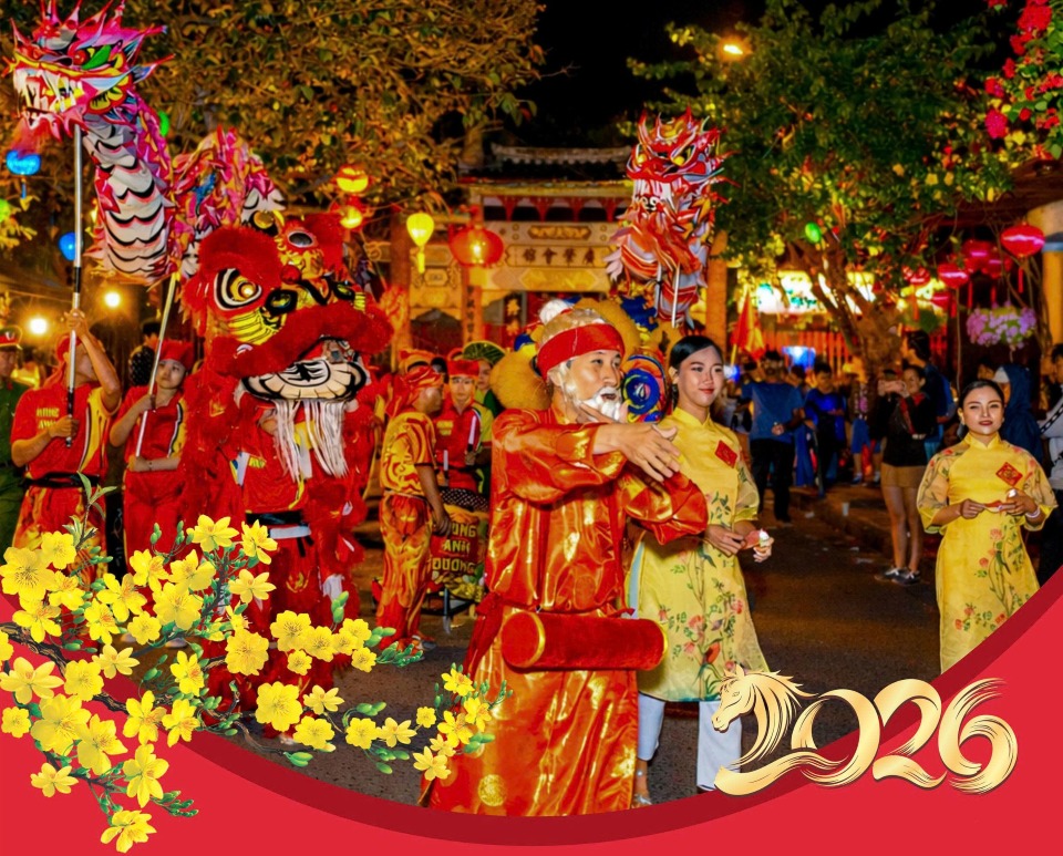 (SGTT) - Hội Tết Nguyên Đán Bính Ngọ 2026 với nhiều hoạt động văn hóa, nghệ thuật, sinh hoạt mang đậm nét truyền thống và dân gian tại Đô thị cổ Hội An và vùng lân cận sẽ diễn ra từ giữa tháng Chạp đến hết tháng Giêng âm lịch.