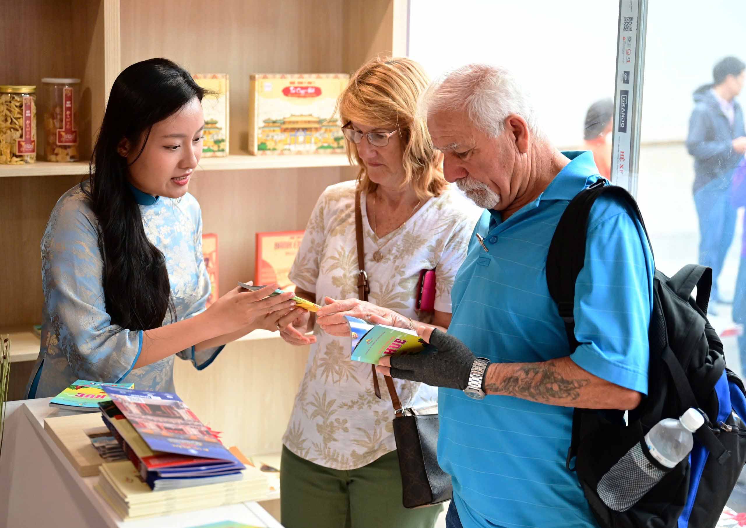 Khách quốc tế trải nghiệm sản phẩm tại Huế. Ảnh: TL