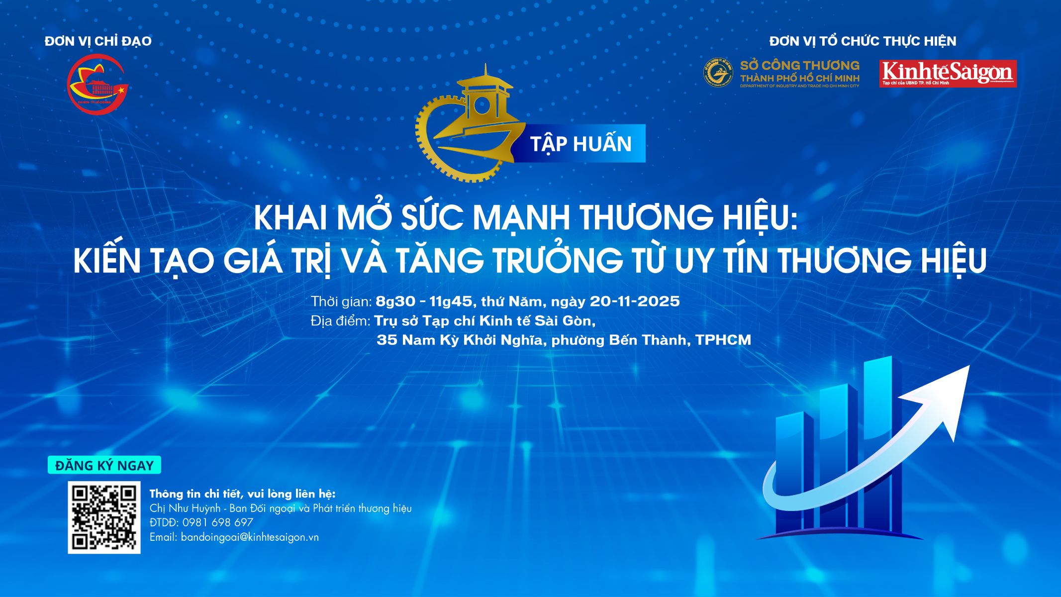 (SGTT) - Vào ngày 20-11 tới, Tạp chí Kinh tế Sài Gòn (Saigon Times Group) sẽ phối hợp với Sở Công Thương TPHCM tổ chức buổi tập huấn chuyên đề “Khai mở sức mạnh thương hiệu: Kiến tạo giá trị và tăng trưởng từ uy tín thương hiệu”, nhằm giúp cộng đồng doanh nghiệp Việt, đặc biệt là nhóm doanh nghiệp vừa và nhỏ, hiểu rõ cách khai thác và gia tăng giá trị từ thương hiệu.