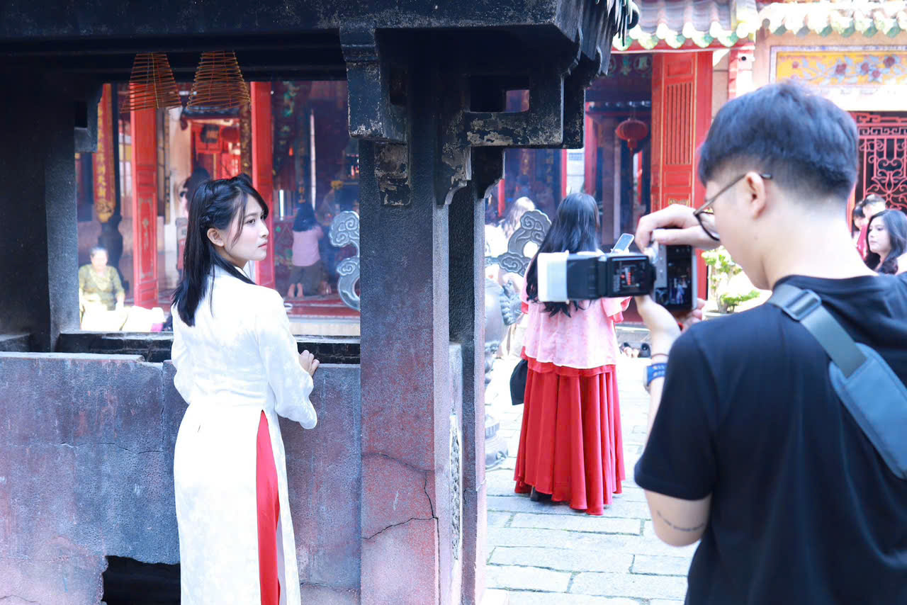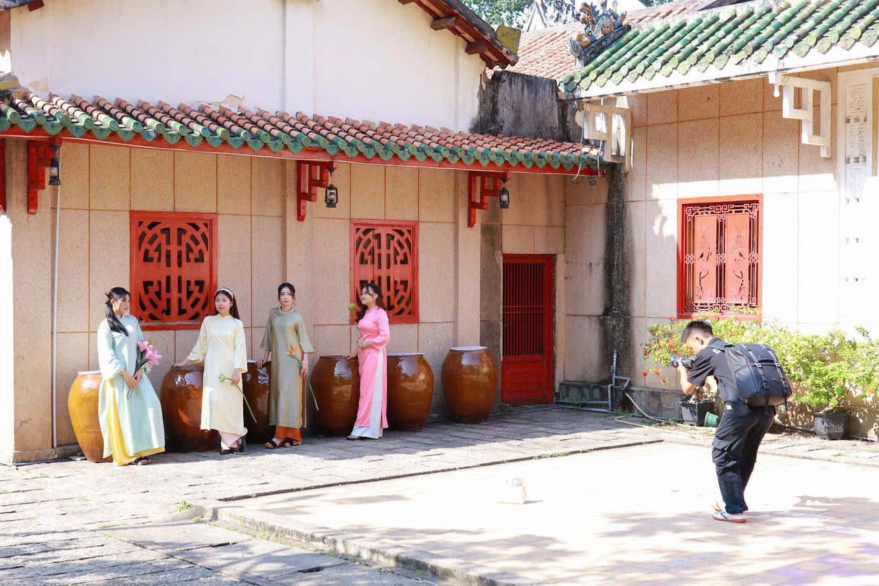 Chụp ảnh Tết sớm tại TPHCM đang trở thành xu hướng hấp dẫn với không gian kiến trúc cổ kính và trang phục truyền thống.