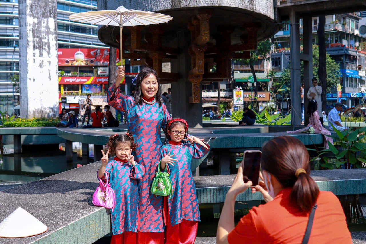Ghi nhận của KTSG Online cho thấy khu vực trước cổng chợ Bến Thành đang là điểm chụp ảnh Tết thu hút rất đông người dân tại TPHCM.Nhiều phụ nữ trung niên diện áo dài rực rỡ, ngồi bên xe xích lô chụp ảnh lưu niệm trong không khí Tết sớm.Các cặp đôi chụp ảnh trong trang phục mang phong cách hoài cổ, gợi không khí xưa.Không chỉ chụp ảnh sớm, xu hướng trang phục năm nay cũng cho thấy sự chuyển dịch rõ rệt sang Việt phục, cổ phục truyền thống. Bên cạnh áo dài quen thuộc, các trang phục như nhật bình, giao lĩnh, đối khâm, viên lĩnh… được nhiều bạn trẻ lựa chọn.Những địa điểm có kiến trúc mang phong cách cổ kính, nhiều cây xanh trở thành điểm đến quen thuộc để các bạn trẻ diện Việt phục chụp ảnh Tết.Để có những bộ ảnh chỉn chu, nhiều người sẵn sàng thuê thợ chụp ảnh chuyên nghiệp, mức giá từ vài trăm nghìn đến vài triệu đồng.Hồ Con Rùa (Phạm Ngọc Thạch, phường Sài Gòn) cũng là một trong những địa điểm được đông đảo người dân lựa chọn chụp ảnh.Trong không khí đón Tết Bính Ngọ 2026, các phụ kiện hình con ngựa cũng được nhiều người lựa chọn, góp phần tạo điểm nhấn và mang ý nghĩa may mắn cho năm mới.