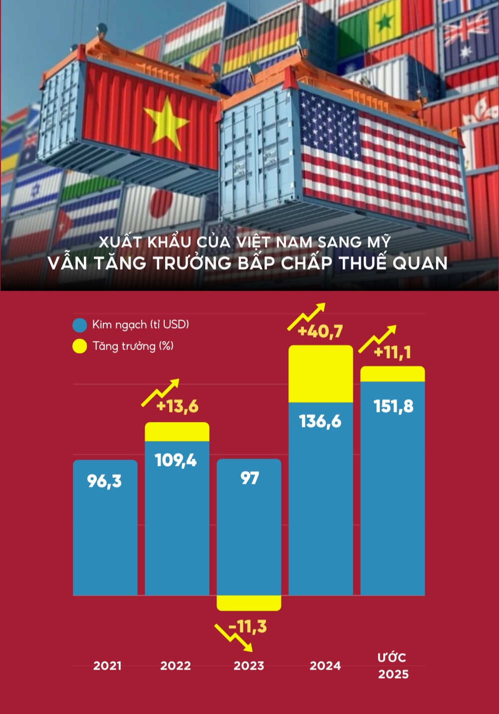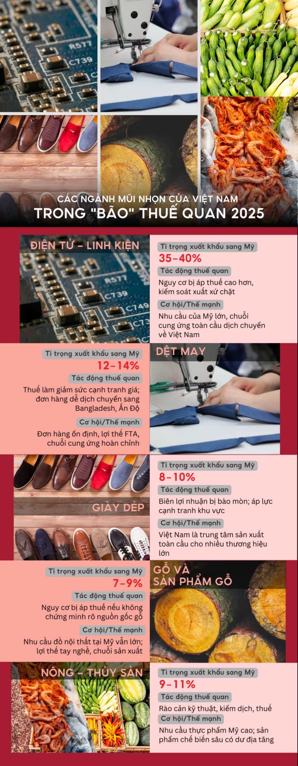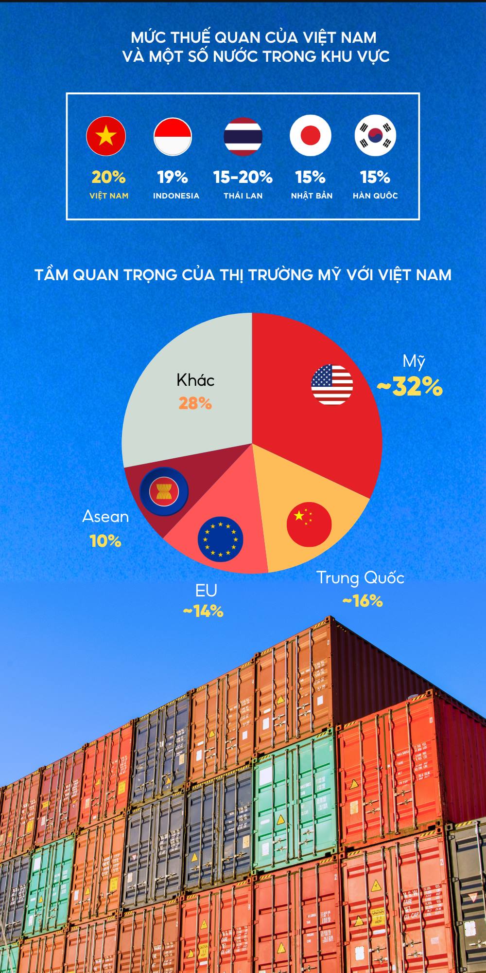 (SGTT) - Từ mức dự kiến 46% xuống khoảng 20%, thuế đối ứng của Mỹ đang định hình lại dòng chảy thương mại. Trong khi nhiều nước chịu sức ép nặng nề, xuất khẩu Việt Nam sang Mỹ vẫn tăng trưởng. Dữ liệu dưới đây cho thấy vị trí của Việt Nam trên “bản đồ thuế quan” 2025.