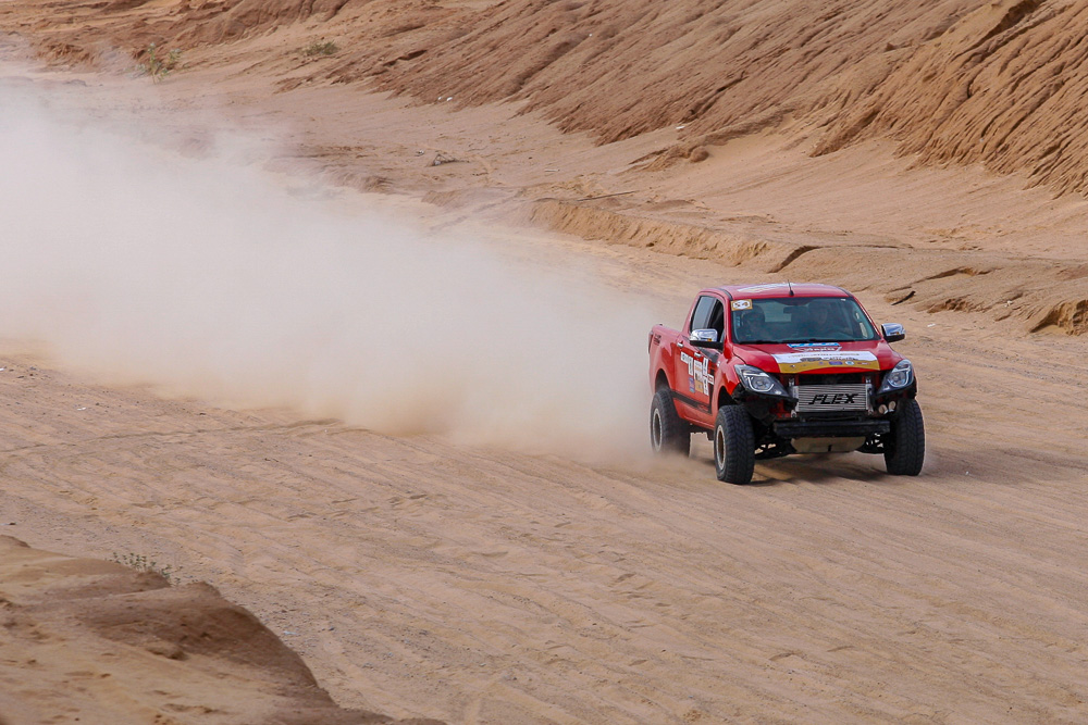 Trong một không gian rộng lớn và địa hình sa mạc kề biển rất độc đáo của khu du lịch Mũi Dinh, hai phân hạng thi đấu Pick Up và SUV lần lượt khởi tranh vào sáng 29-4 vừa qua. Ở phân hạng Pick-Up gồm 22 đội và SUV gồm 12 đội lần lượt chinh phục sáu cung đường thi.