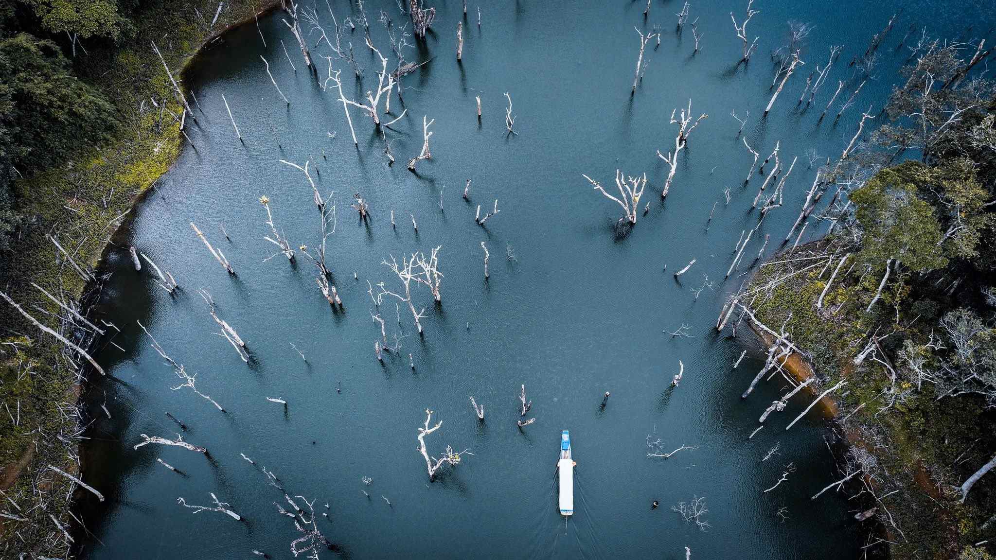 ‘Rừng chết’ trên hồ thủy điện ở Quảng Ngãi nhìn từ trên cao