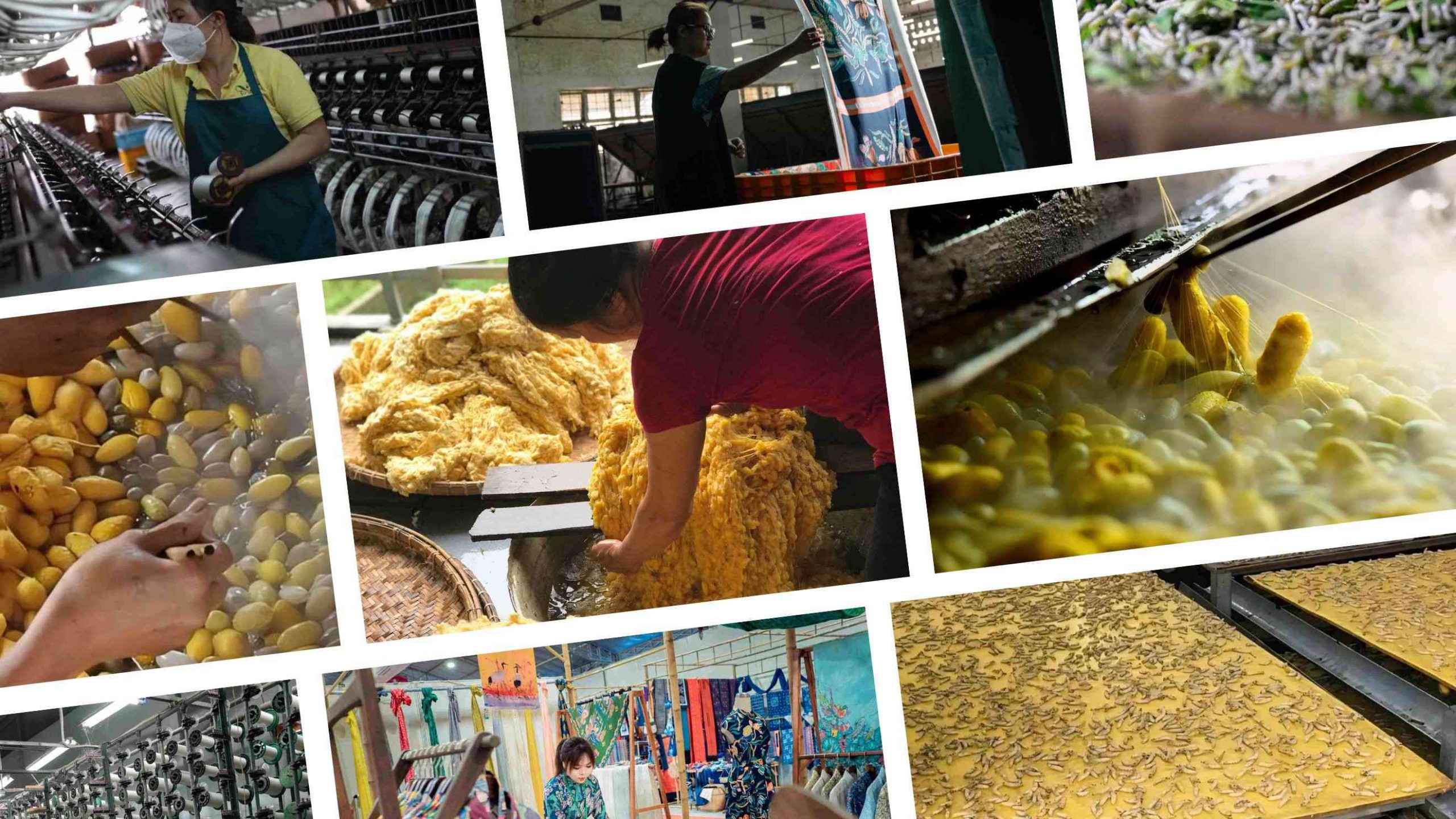Mọi tấm lụa bắt đầu từ vòng đời của tằm. Những quả trứng nở thành tằm, từng ngày miệt mài ăn lá dâu, lớn dần. Khi trưởng thành, con tằm tự cuộn mình vào một góc, tạo kén, rồi nhả ra những sợi tơ óng ánh, mềm mại để bao bọc cơ thể. Trong ba đến bốn ngày, sợi tơ mảnh mai quấn quanh cơ thể tằm tạo thành chiếc kén bền chặt, mỗi con chỉ nhả một sợi tơ duy nhất, có thể dài hàng trăm mét.