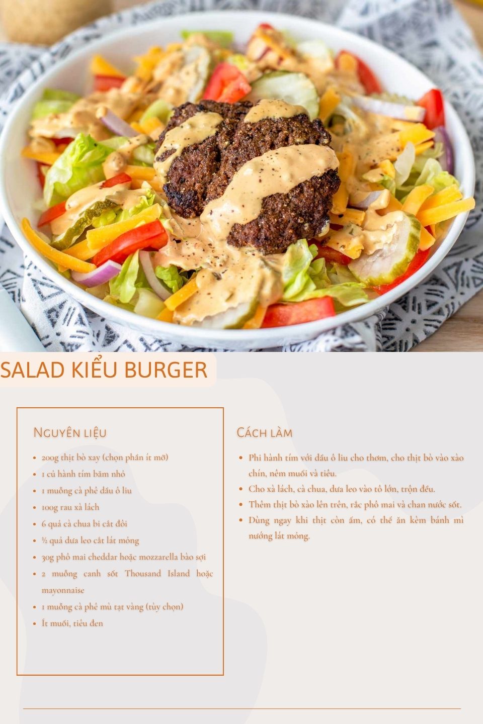 Salad hamburger không chỉ là một món ăn, mà còn là minh chứng cho xu hướng ẩm thực hiện đại, mang tính giản tiện, nhanh gọn, nhưng vẫn đảm bảo chất lượng và giá trị dinh dưỡng. Một đĩa salad đầy màu sắc, hòa quyện giữa rau xanh tươi, thịt bò thơm nồng và nước sốt béo nhẹ chính là lựa chọn lý tưởng cho những ai muốn ăn ngon mà không lo ngán.