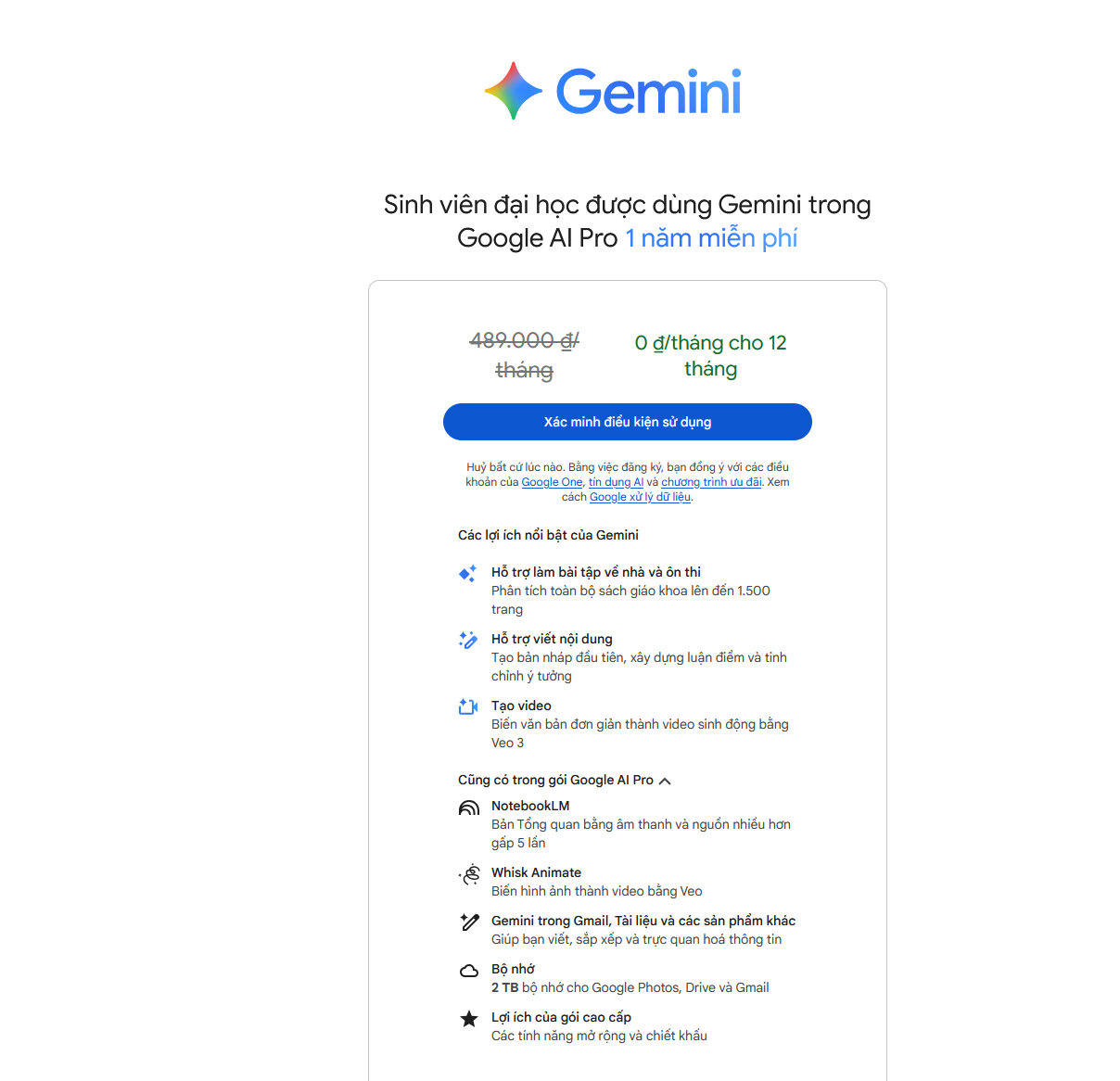 Hiện chương trình này kéo dài đến ngày 9-12-2025, và sinh viên lưu ý tắt tính năng gia hạn tự động trong phần cài đặt của Google One ngay sau khi đăng ký thành công để tránh bị tính phí 489.000 đồng/tháng.