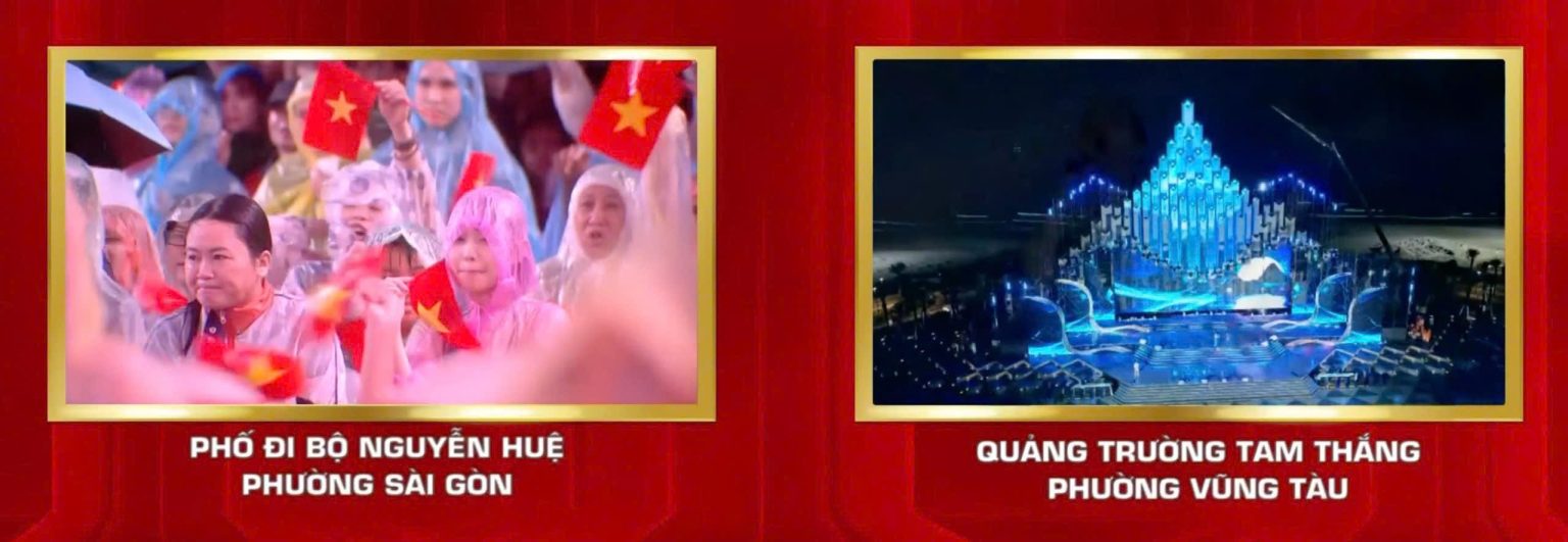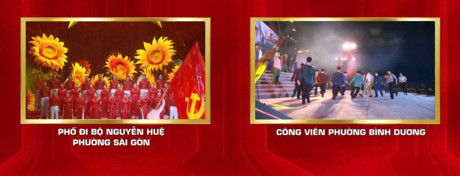 Cả ba khu vực phường Sài Gòn, Bình Dương và Vũng Tàu hòa chung đêm nhạc nghệ thuật mừng Tết Độc lập. Ảnh chụp màn hình
