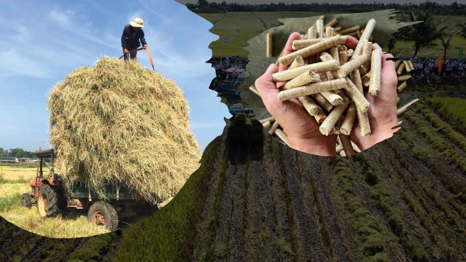 Một vòng tuần hoàn cho rơm rạ, từ cánh đồng đến thu gom rơm và sản xuất thành viên nén năng lượng, là điều mà Việt Nam đang hướng tới. Ảnh: TL