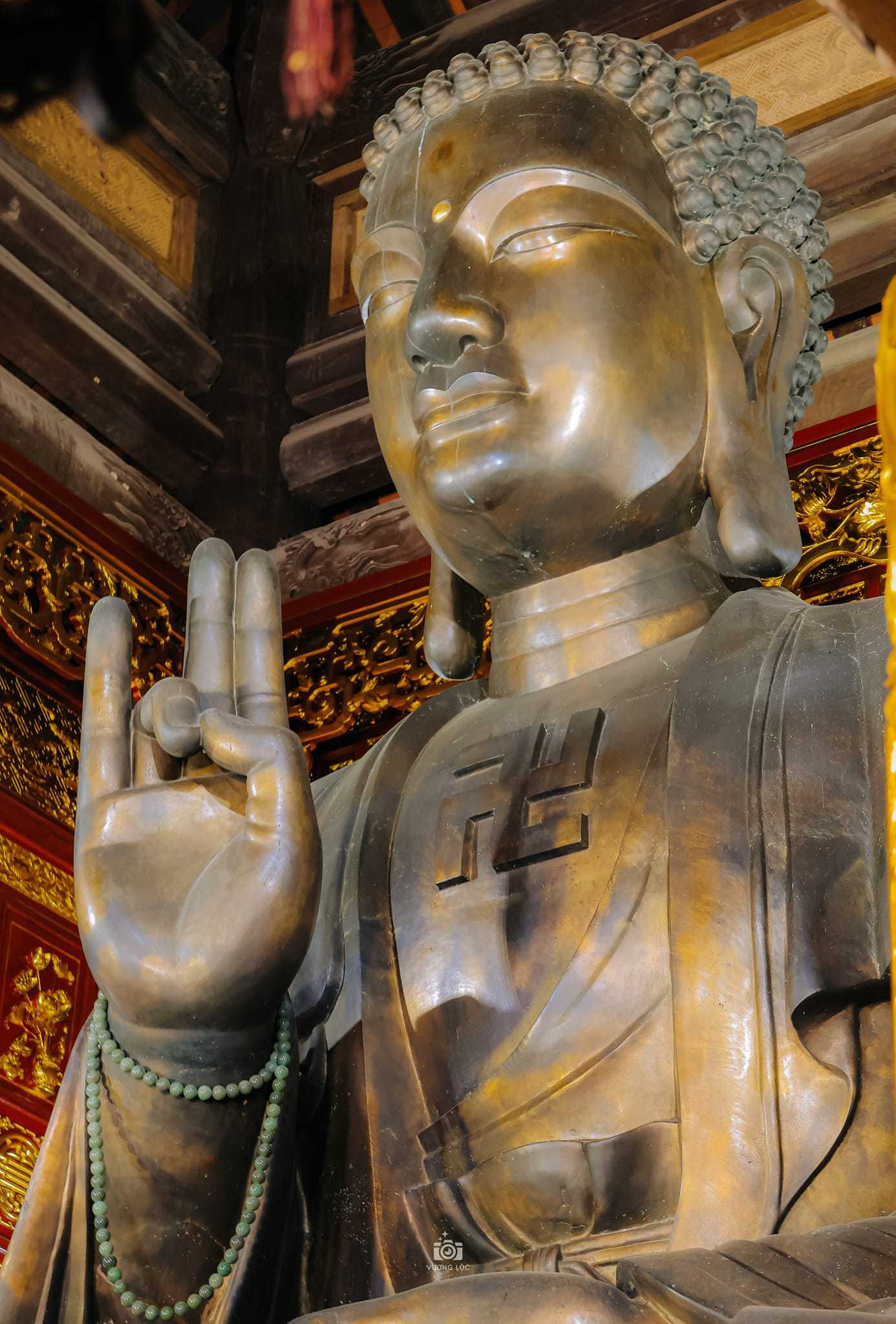 Giữa chính điện, tượng Phật Tổ Như Lai bằng đồng nguyên khối cao 6,5 m, nặng khoảng 30 tấn, được đặt trang nghiêm. Tác phẩm không chỉ mang giá trị tâm linh mà còn thể hiện trình độ nghệ thuật của các nghệ nhân đúc đồng Việt Nam đương đại. Ảnh: Vương LộcBên cạnh giá trị kiến trúc và lịch sử, chùa Non Nước còn là điểm đến mang lại cảm giác thanh tịnh, yên bình. Ảnh: Vương LộcDu khách đến đây có thể vãn cảnh, chiêm bái và hòa mình vào không gian núi rừng trong lành. Ảnh: Vương LộcToàn bộ quần thể nằm giữa thung lũng rộng, xung quanh là rừng cây xanh mát, hồ nước trong veo, tạo nên khung cảnh khoáng đạt và tĩnh lặng – nơi con người có thể tìm lại sự an nhiên giữa nhịp sống hiện đại. Ảnh: Vương Lộc